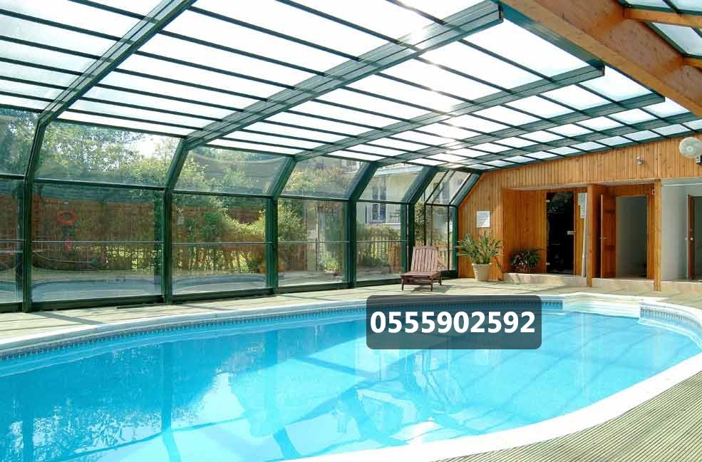 النوع الشفاف ونوفرها بنسبة اضائه تبدا من 25% وتتدرج الى ان تصبح بنسبة 100% ونوفر التغطية للمسابح من على مستوى سطح المسبح او عن طريقة اغلاق المسبح من الاعلى وعمل الجوانب بتغطيات مختلفه شفافه او كاتمه بالكامل مع عمل شبابيك ومنفذ للتكيف وباب باحجام مختلفه .
